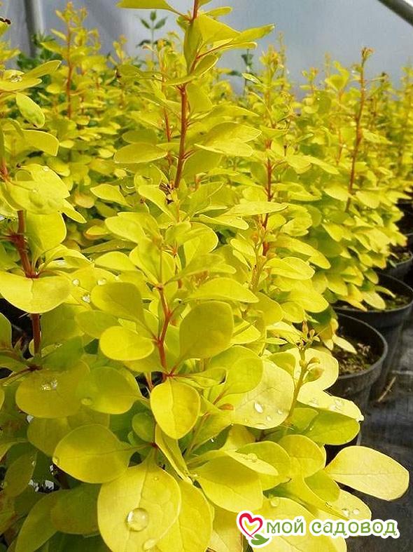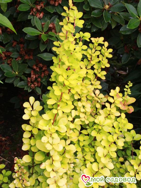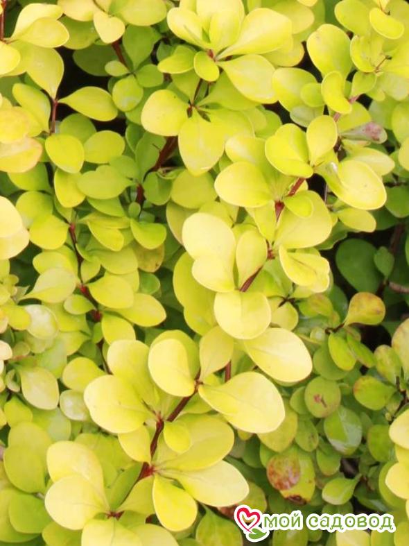 Осенью кусты становятся оранжево-красные, очень эффектные. Цветы желтые, распускаются в мае. Ягоды ярко-красные, блестящие, мелкие, созревают в октябре. Для посадки выбирают солнечное место, в тени теряет интенсивность окраски и форму куста. Действительно, устойчив к прямому солнцу, но при условии обеспечения регулярного полива. В засушливых условиях так же горит и сыпется. К почве не требователен, но значительно лучше развивается на влажных и богатых. Подкармливают на второй год посадки комплексными удобрениями. Требует регулярной прополки, рыхления и мульчирования. Отлично переносит стрижку. Зимостоек полностью. Используется для создания среднерослых бордюров.